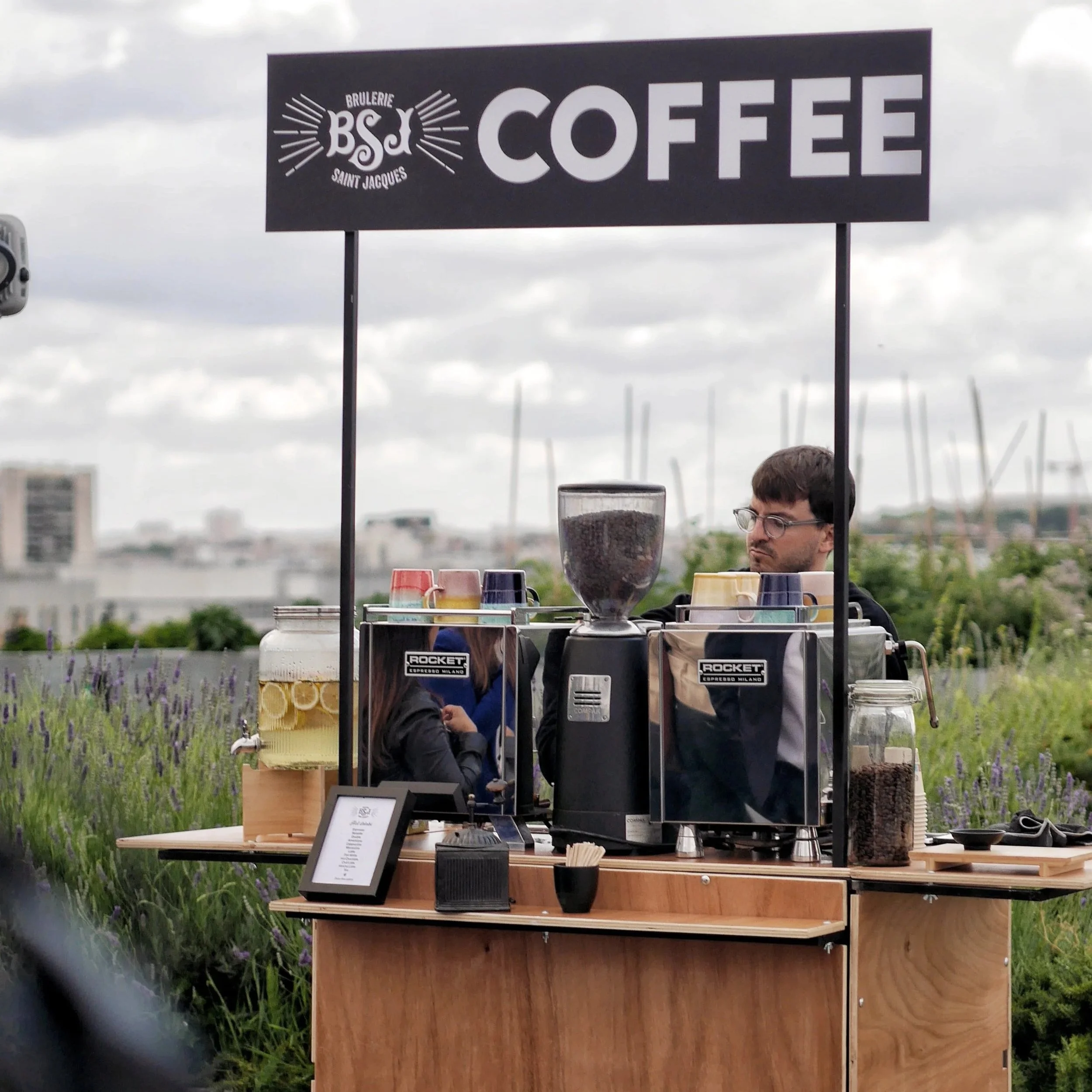 Notre offre s’étend de l’accueil café au petit-déjeuner complet. La variété de nos dispositifs permet de créer une ambiance de Coffee Shop en intérieur comme en extérieur sur une ou plusieurs journées.